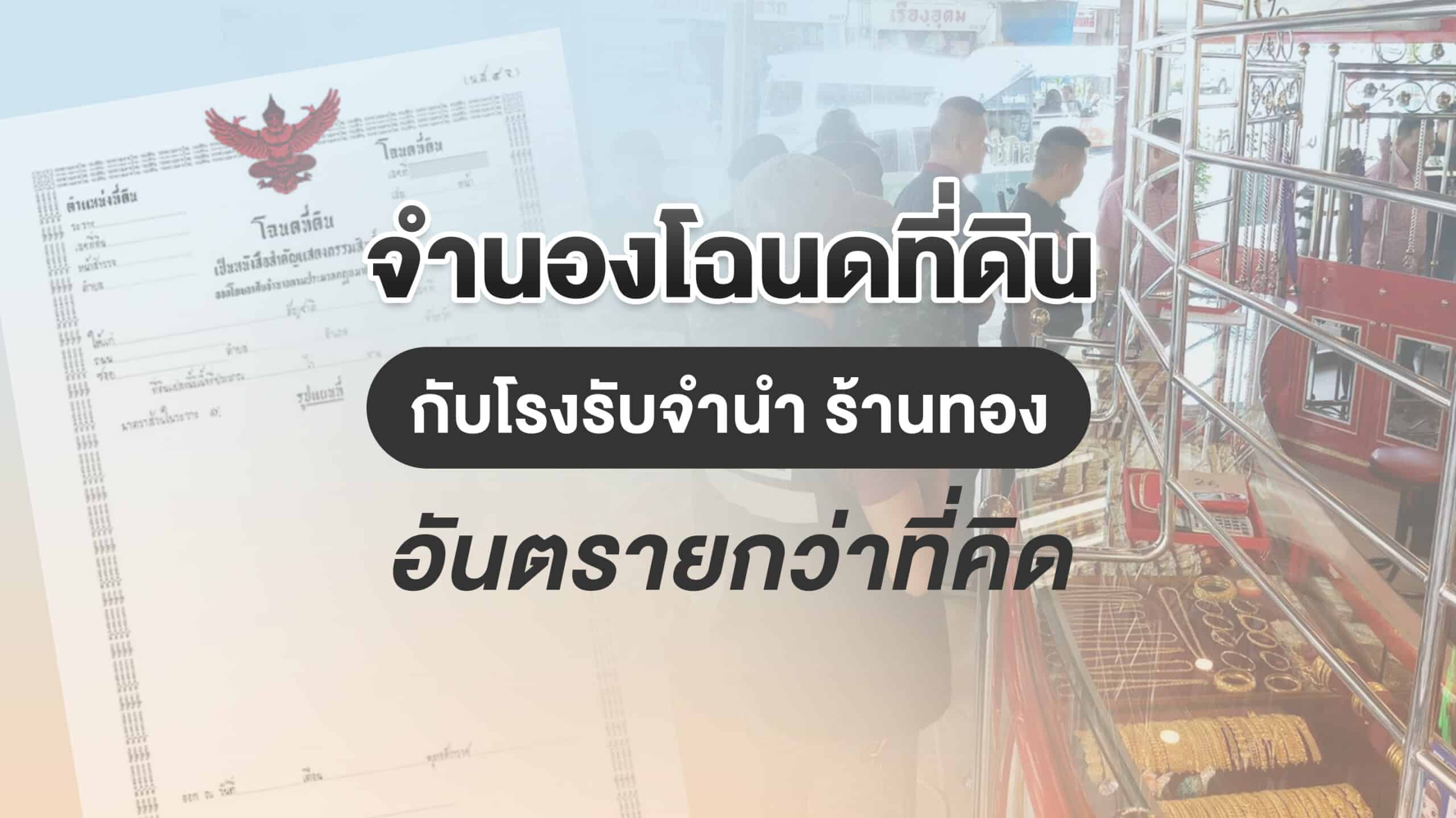 โฉนดที่ดินไม่สามารถจำนำที่โรงรับจำนำหรือร้านทองได้ตามกฎหมาย หากต้องการใช้โฉนดเป็นหลักประกัน ต้องทำผ่านการจำนองหรือขายฝากที่สำนักงานที่ดิน หรือผ่านสถาบันการเงินและบริษัทสินเชื่อที่ได้รับอนุญาตเท่านั้น การหลงเชื่อวิธีลัดอาจทำให้คุณเสียสิทธิในที่ดิน และถูกเอาเปรียบได้ง่าย